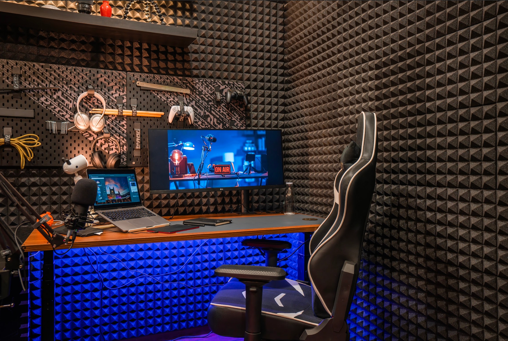 → A fully-equipped creative room for podcasting, video production, and content creation.